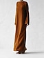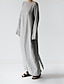Damen Maxikleid Kunstbaumwollleinen Kaftan Kleid Freizeitkleid Basic Klassisch Lässig Täglich Outdoor Urlaub Lässiger Schnitt Einfach Dreiviertelarm V Ausschnitt Schwarz Weiß Purpur Herbst