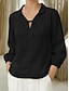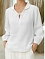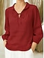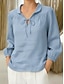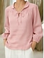 Damen Leinenähnliches Faux-Baumwoll-Leinen Bluse Schnürung Unifarbe Elegant Stilvoll Grundlegend Langarm Hemd Kragen Reguläre Oberteile Täglich Blau Schwarz Weiß Pink Rot Sommer Frühling Herbst