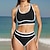 Damen Tankini Bikini, Zweiteiler Halter Offener Rücken Bademode Badeanzug Schwarz / Weiß Schwarz Schnelltrocknend Leicht Atmungsaktiv Ärmellos - Surfen Strand Schwimmen Sommer Frühling