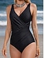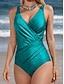 Damen Badeanzug Einteiler Slips Bademode Gerafft Elegant Urlaub Einfach V Ausschnitt Ärmellos Badeanzüge