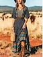 Damen Maxidress Casual kleid Schaukelkleid A Linie Kleid Boho-Kleid Brautkleider schlicht Täglich Regular Fit Blumen Paisley-Muster Halbe Ärmel V Ausschnitt Blau Braun Sommer Frühling Herbst