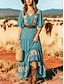 Damen Maxidress Casual kleid Schaukelkleid A Linie Kleid Boho-Kleid Böhmen Ethnisch Brautkleider schlicht Täglich Regular Fit Paisley-Muster Kurzarm V Ausschnitt Blau Sommer Frühling