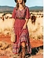 Damen Kleid-Set A Linie Kleid Urlaub Boho Grafik Paisley-Muster Geschichtet Druck Maxikleid Dreiviertelarm V Ausschnitt Täglich Urlaub Rote Orange Grün Sommer Frühling Normale Passform