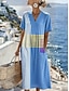 Maxikleid Damen Leinenartig Atmungsaktiv Leicht Sommerkleid Shift Kleid Freizeitparty Urlaub Reguläre Passform Floral Grafik Lange Ärmel V-Ausschnitt Blau Gelb Rot Orange Sommer Frühling