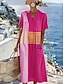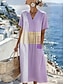 Damen Midi Kleid Leinenähnlich Atmungsaktiv Leicht Sommerkleid Shift Kleid Lässig Party Urlaub Lockere Passform Geometrisch Lange Ärmel V-Ausschnitt Gelb Pink Hellbraun Sommer Frühling