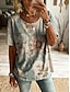Damen T Shirt Druck Ombre Blumen Grafik Vintage Stilvoll Klassisch Kurzarm Einkerbiger Ausschnitt Normale Oberteile Täglich Wochenende Blau Weiß Grün Sommer Frühling