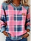 Damenshirt Langarm Rundhals Langarm Tunika Grafik Geometrisch Karo Lässig Rundhals Regelmäßige Oberteile Täglich Druck Pink Lila Grün Frühling Herbst Vorsaison