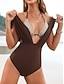 Damen Badeanzug Einteiler Monokini Bademode Bauchkontrolle Hohe Taille Schlank Rückenfrei Urlaub Strandbekleidung Karomuster V Ausschnitt Ärmellos Badeanzüge