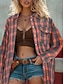 Damen Hemd Durchgeknöpft Hemd Freizeithemd Bluse Knöpfe Karomuster Vintage Stilvoll Klassisch Langarm Hemdkragen Normale Oberteile Täglich Ferien Ausgehen Orange Sommer Frühling