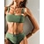 Damen Badeanzug Bikinis 2 Stück Normal Bademode 2 Teile Gerüscht Rückenfrei Einfarbig Grün Weiß Schwarz Gelb Rosa Gefüttert Trägerlos Badeanzüge neu Urlaub Sexy / Modern / Gepolsterte BHs