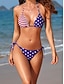 Unabhängigkeitstag Patriotische Damen Badebekleidung Bikini 2 Teilig Frech Badeanzug Schlank Rückenlos Urlaub Strand Kleidung Flagge Halterneckt Ärmellos Badeanzüge