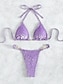 Damen Badeanzug Bikini Zweiteilig Tanga Bademode Schlank Rückenfrei Urlaub Strandbekleidung Einfarbig Leopard Neckholder Ärmellos Badeanzüge