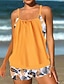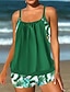 Damen Tankini 2-teiliger Badeanzug Palm Shorts Bauchkontrolle Hohe Taille Slim Rückenfrei Urlaub Strandbekleidung Floral Blätter Halfterhals Ärmellos Badeanzüge