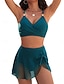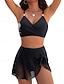 Damen Badeanzug Bikini Zweiteilig Rock Bademode Schlank Rückenfrei Urlaub Strandbekleidung Einfarbig V Ausschnitt Ärmellos Badeanzüge