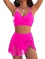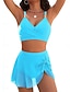Damen Badeanzug Bikini Zweiteilig Rock Bademode Schlank Rückenfrei Urlaub Strandbekleidung Einfarbig Rundhalsausschnitt Ärmellos Badeanzüge