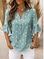 Damen Bluse Rüsche Druck Blumen Grafik Vintage Täglich Stilvoll Dreiviertelarm V Ausschnitt Normale Oberteile Täglich Ferien Urlaubskleidung Blau Weiß Gelb Rosa Sommer Frühling