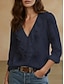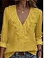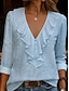 Damen Bluse Rüsche Einfarbig Stilvoll Basic Lässig Dreiviertelarm V Ausschnitt Normale Oberteile Täglich Blau Schwarz Weiß Rote Grün Sommer Frühling Herbst