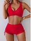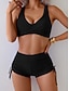 Damen Badeanzug Tankini Zweiteilig Rock Bademode Kordelzug Bauchkontrolle Hohe Taille Schlank Rückenfrei Urlaub Strandbekleidung Einfarbig U-Ausschnitt Ärmellos Badeanzüge