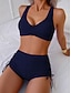 Damen Bikini 2-teiliges Schwimmbad Bikini Slim Rückensfrei Urlaub Strandbekleidung Einfarbig V-Ausschnitt Ärmellose Badeanzüge