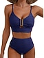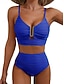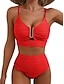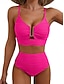 Damen Badeanzug Bikini Zweiteilig Hohe Taillenlinie Bademode Gerafft Rückenfrei Urlaub Strandbekleidung Einfach V Ausschnitt Ärmellos Badeanzüge