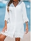 Damen Badeanzug Überwurf Badeanzugkleid Kleid Bademode Patchwork Knöpfe Urlaub Strandbekleidung Einfach V Ausschnitt Kurze Ärmel Badeanzüge