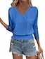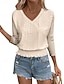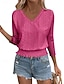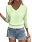 Damen Textur Bluse Oberteil mit Ösen Pointelle Tee Bluse Ausgehöhlt Einfarbig Stilvoll Modern Dreiviertelarm V Ausschnitt Normale Oberteile Lässig Täglich Arbeit Blau Gelb Purpur Grün Frühling Herbst