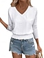 Damen Hemd Pointelle-Shirt Oberteil mit Ösen Bluse Lochmuster Einfach Stilvoll Klassisch Modern Langarm V Ausschnitt Normale Oberteile Lässig Täglich Strand Schwarz Weiß Gelb Rosa Purpur Sommer