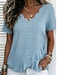 Damen Pointelle-Shirt Oberteil mit Ösen Bluse Gerafft Ausgehöhlt Einfach Aktiv Stilvoll Kurzarm V Ausschnitt Normale Oberteile Lässig Täglich Strand Blau Weiß Gelb Rosa Sommer Frühling