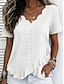 Damen Hemd Pointelle-Shirt Oberteil mit Ösen Bluse Bestickt Einfarbig Täglich Stilvoll Lässig Kurzarm V Ausschnitt Normale Oberteile Lässig Täglich Arbeit Weiß Sommer Frühling