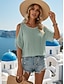 Damen Textur Bluse Oberteil mit Ösen Pointelle Tee Bluse Ausgehöhlt Einfarbig Stilvoll Modern Dreiviertelarm V Ausschnitt Normale Oberteile Lässig Täglich Arbeit Blau Gelb Purpur Grün Frühling Herbst