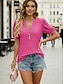 Damen Textur Bluse Oberteil mit Ösen Pointelle Tee Bluse Gerafft Einfach Aktiv Mode Kurzarm V Ausschnitt Normale Oberteile Lässig Täglich Outdoor Schwarz Weiß Rosa Dunkelgrün Rosa Sommer Frühling