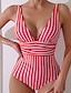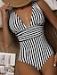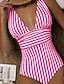 Damen Badeanzug Einteiler Bikini Shorts Bademode Gerafft Abspecken Rückenfrei Urlaub Strandbekleidung Gestreift Stürzen Ärmellos Badeanzüge