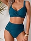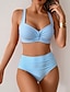 Damen Badeanzug Bikini Zweiteilig Hohe Taillenlinie Bademode Patchwork Rückenfrei Urlaub Strandbekleidung Farbblock U-Ausschnitt Ärmellos Badeanzüge