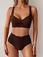 Damen Badeanzug Zweiteilig Freche Unterhose Bademode Gerafft Rückenfrei Urlaub Strandbekleidung Einfach V Ausschnitt Ärmellos Badeanzüge