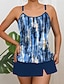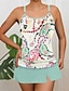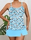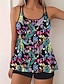 Damen Tankini 2-teiliges Badeanzug Palme Slips Aktivurlaub Blumen Grafik U-Ausschnitt ärmellos Schwimmsuits