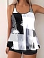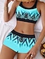 Damen Badeanzug Zweiteilig Shorts Bademode Rückenfrei Urlaub Strandbekleidung Grafik U-Ausschnitt Ärmellos Badeanzüge