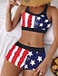 Damen Badeanzug Zweiteilig Shorts Bademode Rückenfrei Urlaub Strandbekleidung Grafik Rundhals Ärmellos Badeanzüge
