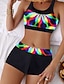Damen Badeanzug Zweiteilig Shorts Bademode Rückenfrei Urlaub Strandbekleidung Grafik Farbblock V Ausschnitt Ärmellos Badeanzüge