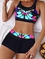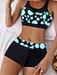 Damen Badeanzug Zweiteilig Shorts Bademode Rückenfrei Urlaub Strandbekleidung Blumen Grafik Rundhals Ärmellos Badeanzüge