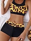 Damen Badeanzug Bikini Zweiteilig Bademode Rückenfrei Tropisch Strandbekleidung Leopard Neckholder Ärmellos Badeanzüge