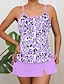 Damen Übergröße Badeanzug Tankini Zweiteilig Badeanzugkleid Hohe Taillenlinie Bademode Hohe Taille Schlank Gestrickt Stilvoll Strandbekleidung Leopard Tropisch Rundhals Ärmellos Badeanzüge