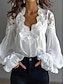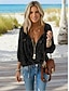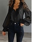 Damen Spitzenbluse Bluse Spitze Patchwork Einfarbig Elegant Stilvoll Basic Langarm V Ausschnitt Normale Oberteile Täglich Ausgehen Schwarz Weiß Sommer Frühling Herbst