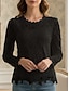 Damen Bluse Spitze Patchwork Einfarbig Elegant Stilvoll Basic Langarm Rundhalsausschnitt Normale Oberteile Täglich Schwarz Weiß Rosa Purpur Grau Frühling Herbst Winter