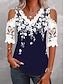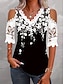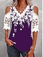 Damen Oberteil mit Spitzenspleiß Bluse Spitze Druck Blumen Stilvoll Lässig Kurzarm V Ausschnitt Normale Oberteile Täglich Blau Schwarz Rote Purpur Sommer Frühling