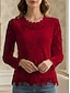 Damen Hemd Bluse Spitzentops Spitze Einfach Vintage Klassisch Lässig Langarm Rundhalsausschnitt Normale Oberteile Täglich Ferien Ausgehen Blau Schwarz Weiß Rosa Wein Frühling Herbst