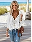Damen Hemd Spitzenbluse Bluse Elegante Oberteile Spitze Knöpfe Einfach Basic Modern V Ausschnitt Täglich Straße Weiß Sommer