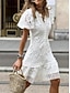 Damen Knielanges Kleid Spitzenkleid Weißes Kleid Freizeitkleid Elegant Mode Modern Outdoor Urlaub Ausgehen Normale Passform Einfach Kurzarm V Ausschnitt Weiß Sommer Frühling