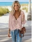 Damen Hemd Leinen-inspirierte Sets Bluse Baumwollhemd Spitze Patchwork Einfarbig Basic Lässig Dreiviertelarm V Ausschnitt Normale Oberteile Täglich Weiß Sommer Frühling