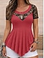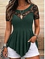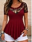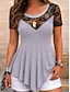 Damen T Shirt Spitzentops T-Shirt Spitze Patchwork Einfach Mode Stilvoll Klassisch Kurzarm Rundhalsausschnitt Normale Oberteile Täglich Ausgehen Wochenende Blau Schwarz Wein Rote Purpur Sommer