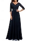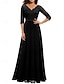 Damen Midikleid schwarzes kleid Spitzenkleid Partykleid Cocktailkleid Elegant Mode Party Urlaub Formell Hochzeitsgast Normale Passform Einfarbig Dreiviertelarm V Ausschnitt Schwarz Frühling Herbst